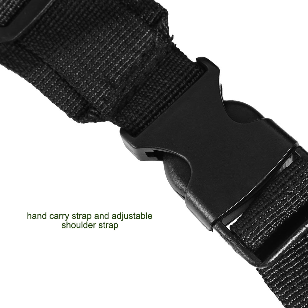 - With hand carry strap and adjustable shoulder strap