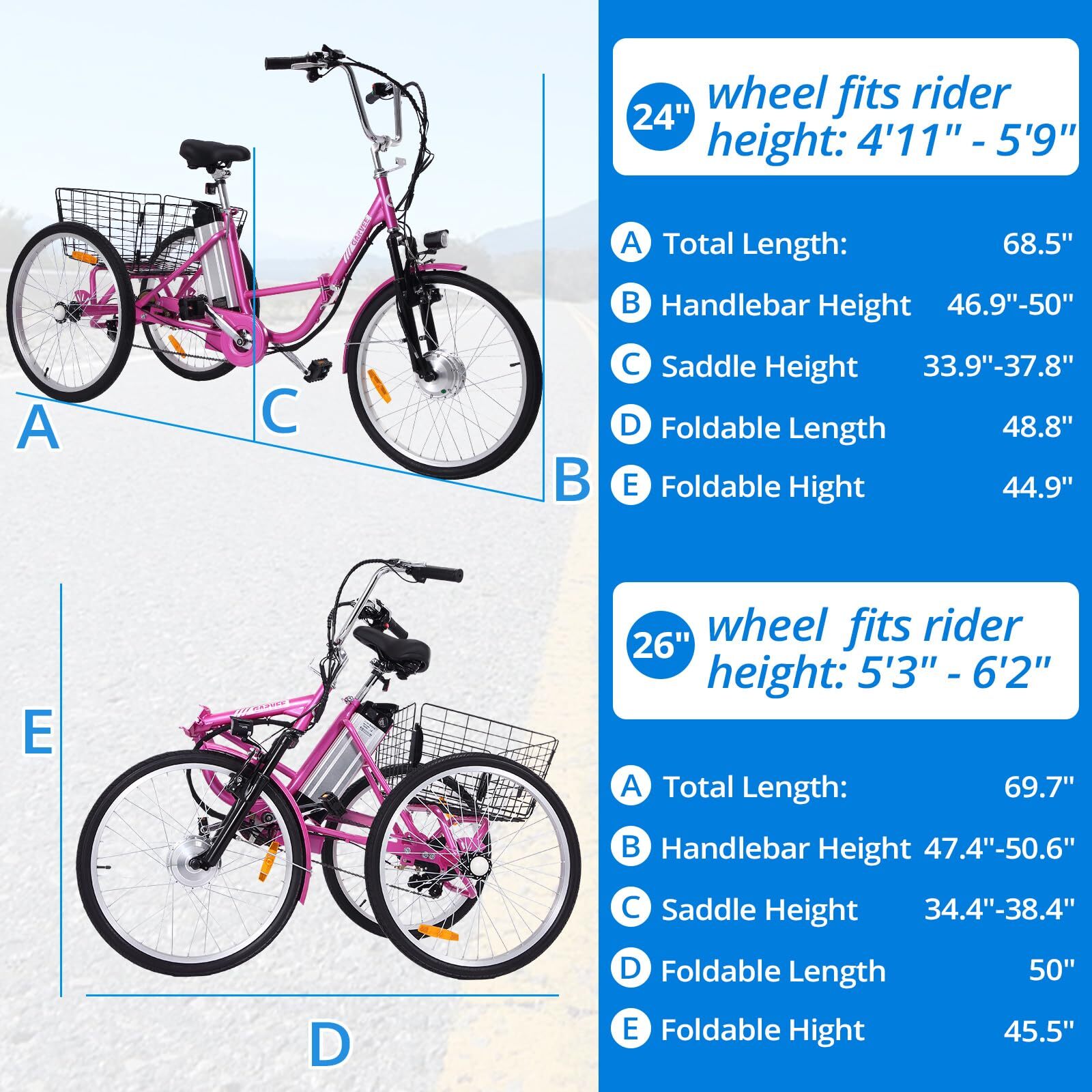 US GARVEE Electric Trike 7-Speed Adult Electric Tricycle Folding Electric Tricycle with Basket