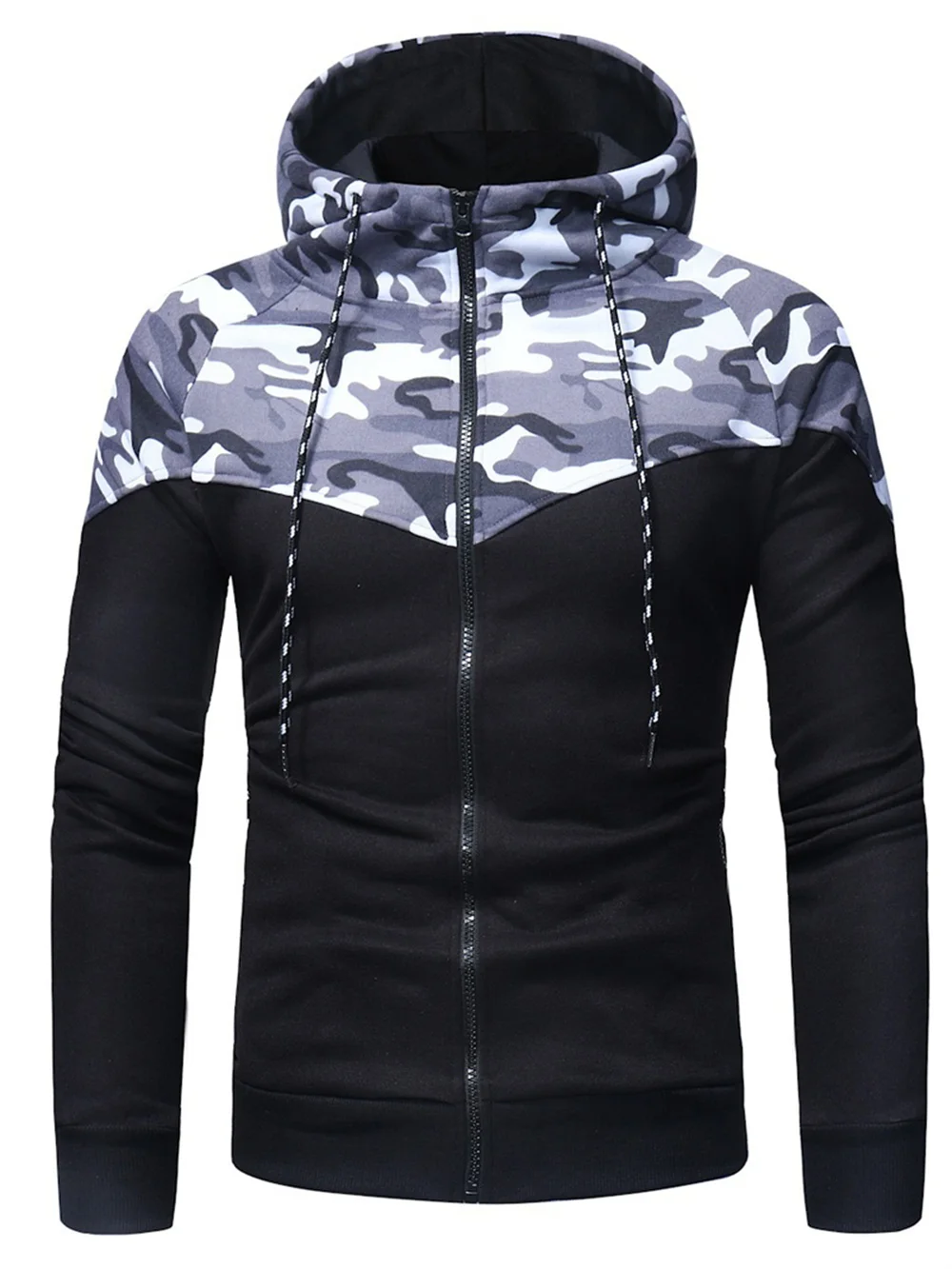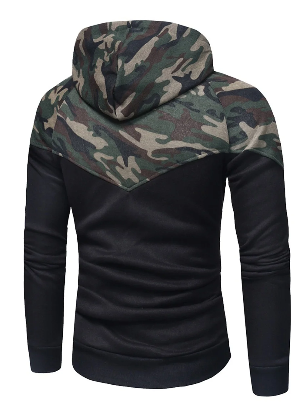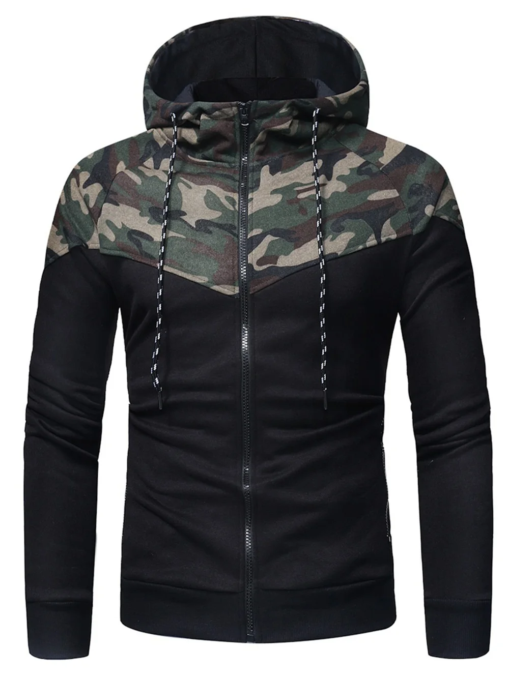Color: Green, Size: L - spring and autumn new zipper hooded sweater large size European and American fashion trend camouflage stitching slim sweater coat